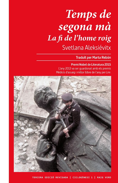 Temps de segona mà: La fi de l'home roig és una obra que parla dels últims vint anys de la història de Rússia i de com el final del règim soviètic ha afectat les persones que creien fermament que aquest règim era l'única forma ètica de vida. Des d'un moment inicial de confusió, amb les promeses de capitalisme de Gorbatxov (que per a la majoria no era res positiu, sinó el mal contra el qual havien lluitat tota la seva vida), fins a arribar al moment actual, en què molts es pregunten per què Rússia, amb la seva grandesa, no els proporciona més possibilitats d'una vida feliç i pròspera.