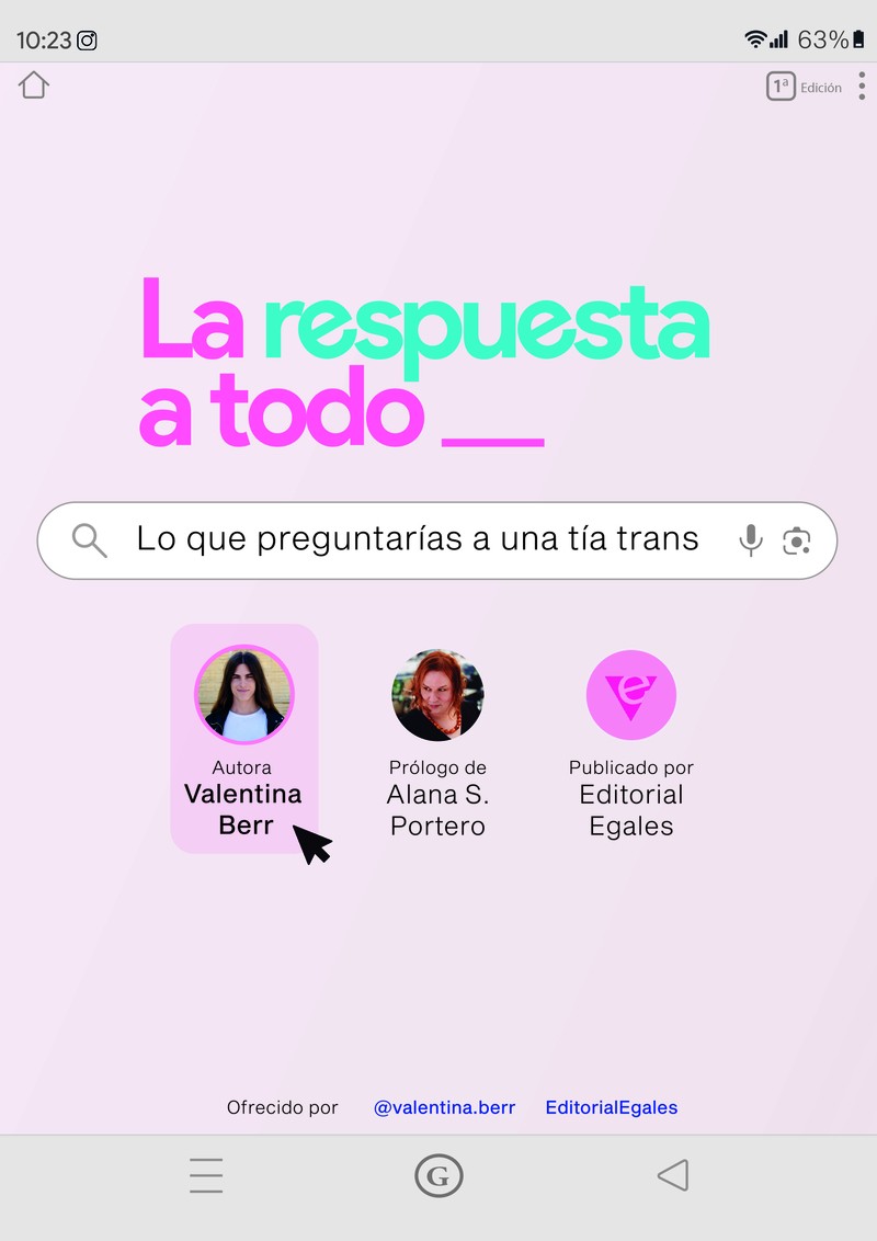 «En tiempos de imposición de silencios y repetición de eslóganes, Valentina recupera con humor, cercanía y la más subversiva de las astucias la radicalidad del verbo preguntar. Te hará creer que responde a tus preguntas cuando, realmente, llena de interrogantes tu cotidianidad. Sin duda saciarás tu curiosidad, mas no podrás abandonar esta conversación sin sufrir tu propia trans/formación».IRA HYBRIS, autora de Mutantes y divinas
