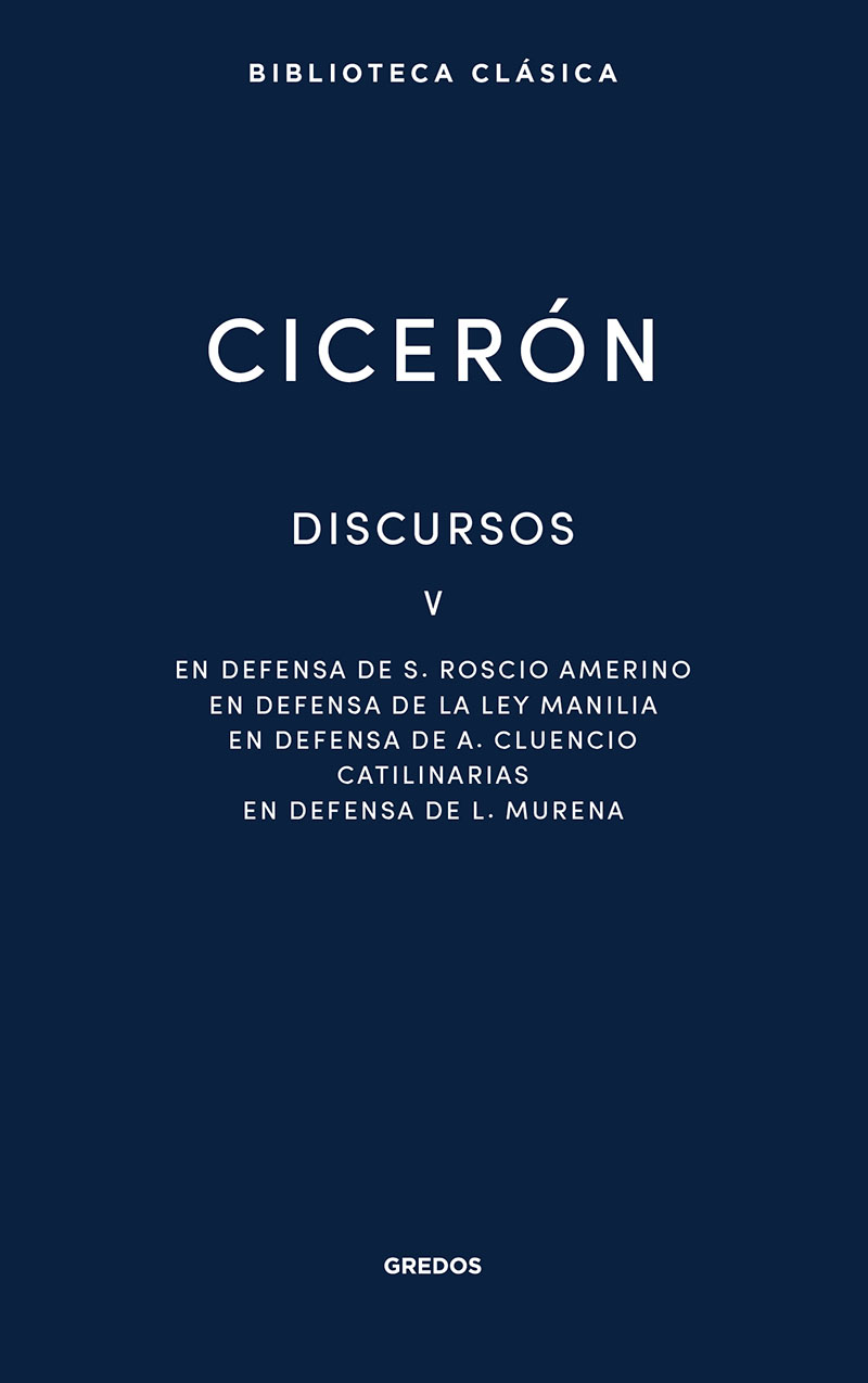De entre los discursos de Marco Tulio Cicerón, algunos de los reunidos en este volumen se cuentan entre los más sobresalientes. Aquí encontramos el celebérrimo grupo de las Catilinarias, que tienen un extraordinario valor político, por el contexto grave en que se pronunciaron, y sobre todo un valor literario sin parangón en la prosa latina. También se encuentra su defensa a Sexto Roscio Amerino, la primera causa importante que le dio fama, así como su famoso alegato a favor de la ley Manilia y de Pompeyo, o la defensa de Lucio Murena, en un momento de crisis de la Republica tras la conjuración de Catilina.Publicado originalmente en la BCG con el número 211, este volumen presenta las traducciones de En defensa de S. Roscio Amerino, En defensa de la ley Manilia, En defensa de A. Cluencio, Catilinarias y En defensa de L. Murena realizadas por Jesús Aspa Cereza.